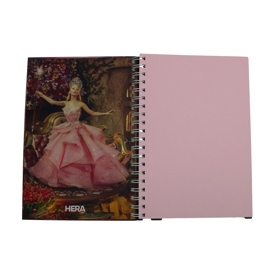Esse caderno é perfeito pra quem ter um caderno da Glinda e um da Elphaba, porque ele é um caderno 2 em 1. Você vira e ele tem uma capa nova. Sendo metade verde e metade rosa.