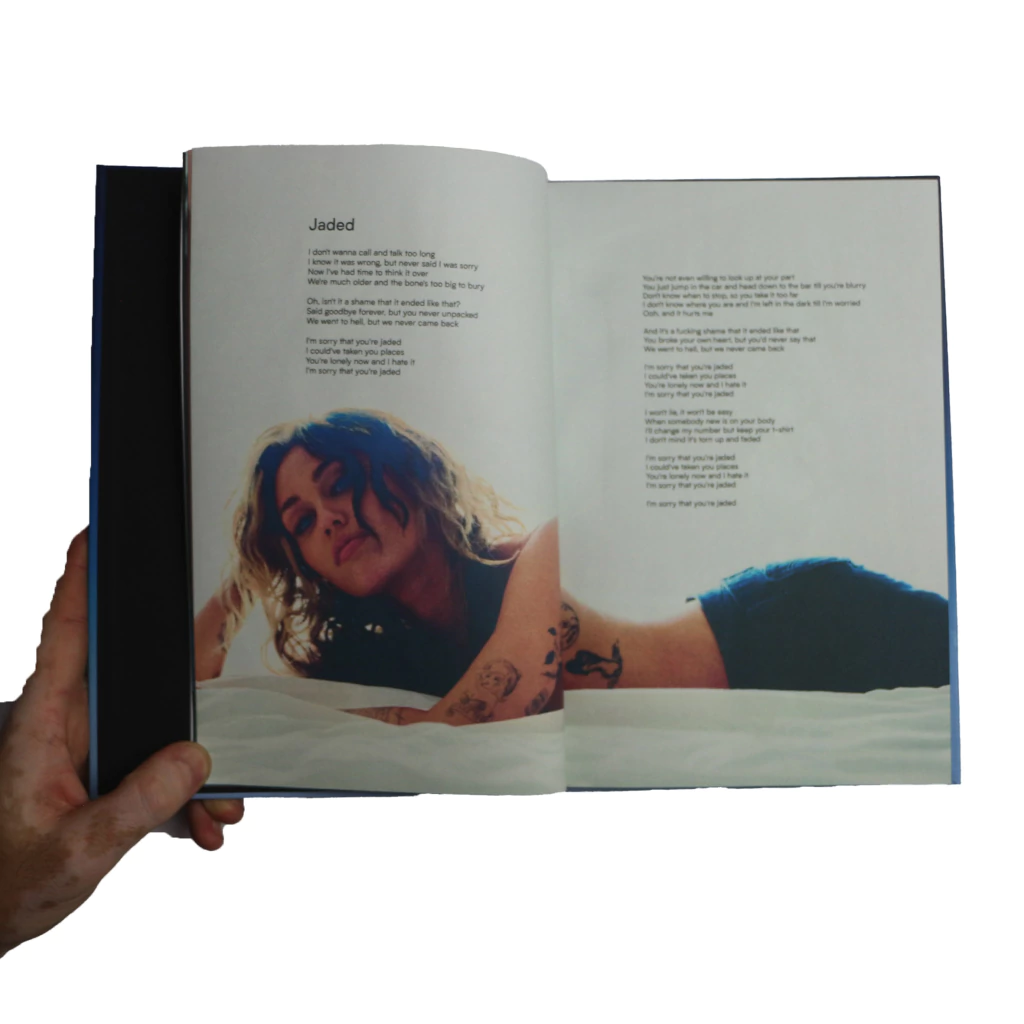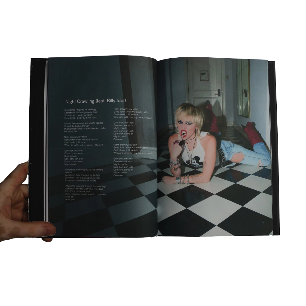 O lyric book do álbum Plastic Hearts de Miley Cyrus traz essa Era que mergulha na estética do rock e punk dos anos 80. Com cada página apresentando as letras do álbum, o livro também traz fotos de Miley em looks icônicos que refletem a atitude rebelde do Plastic Hearts.