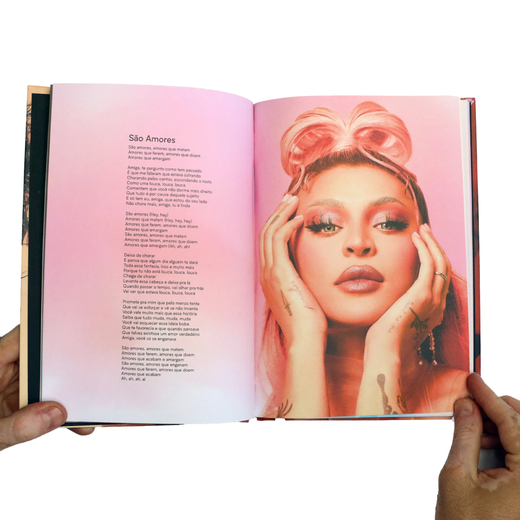 O livro é 2 em 1 e traz os dois álbuns com todas as letras e também com fotos das duas eras.